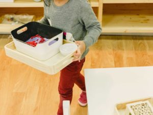 モンテッソーリの3~6歳混合クラスでは、自分より小さなお友達がいつも一緒にいます。お手伝いしたい!やってあげたい!と思えばできる環境が常に整っているのです。